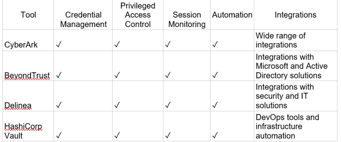 For successful implementation, a structured approach, identifying security gaps, defining the project scope, continuous communication, and the adaptation of new processes are recommended. Comparison of popular PAM tools—CyberArk, BeyondTrust, Delinea, and HashiCorp Vault—reveals differences in features, integrations, prices, and support, guiding the selection of the most suitable PAM tool based on specific needs.